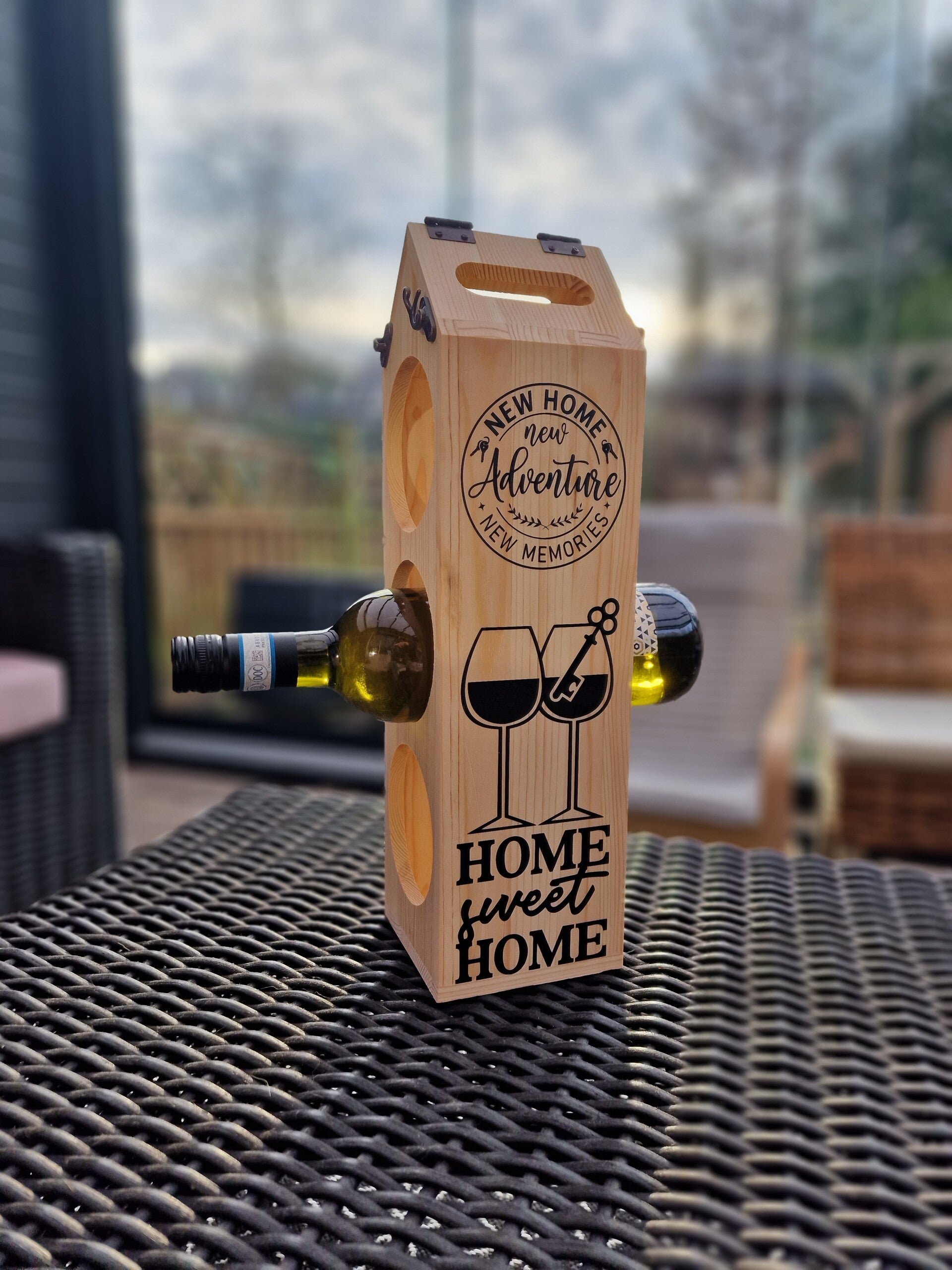 geschikt voor één fles wijn • 8-10 mm FSC-gecertificeerd duurzaam dennenhout • wijn niet inbegrepen.