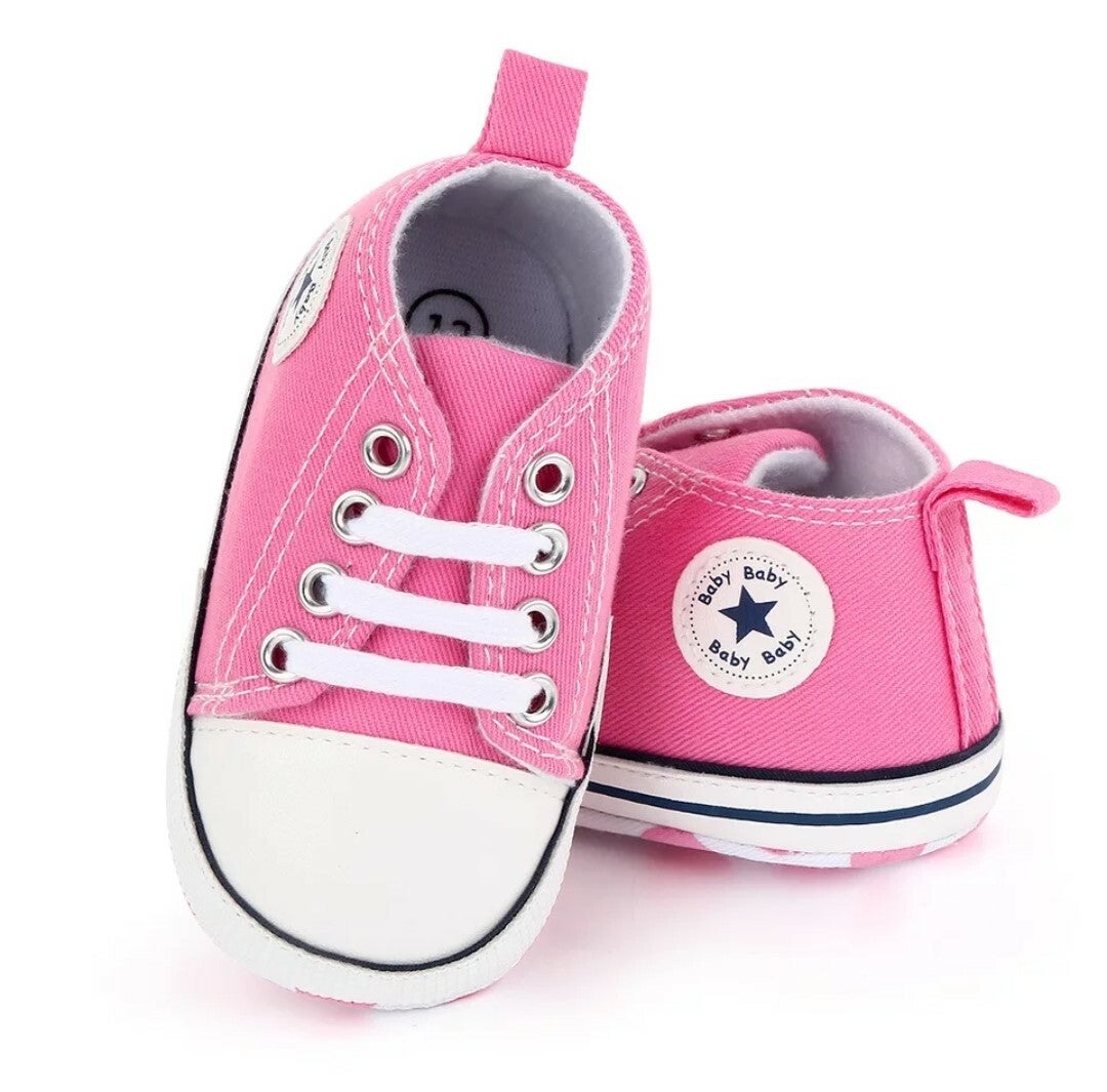 Het schoentje is geschikt voor baby’s van 0 tot 6 maanden. De lengte van het zooltje is 11 cm. Dit kan gezien worden als maat 18. De meeste baby’s zullen de gympen dan ook nog met een leeftijd van 1 jaar passen.
